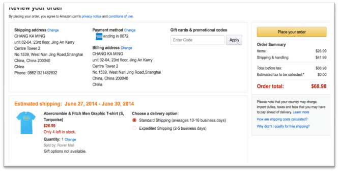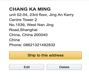 2.在送货地址栏输入/选择中国地址