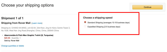 3.选择送货方式,通常按送货速度不同,价格不同
