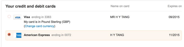 4.选择支付方式,使用美国运通卡支付